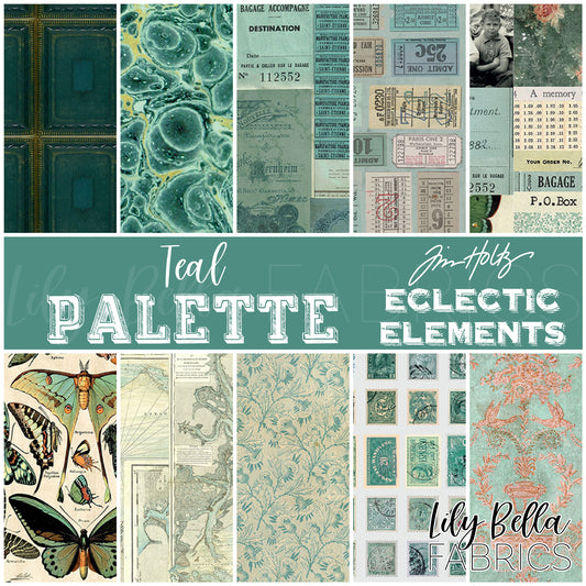 Eclectic Elements Palette: Teal Fat Eighth Bundle (10 pcs) by Tim Holtz for FreeSpirit