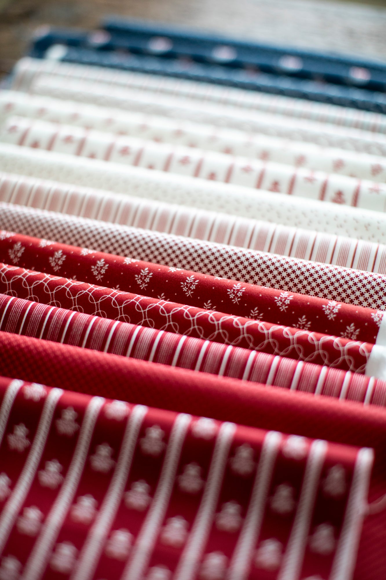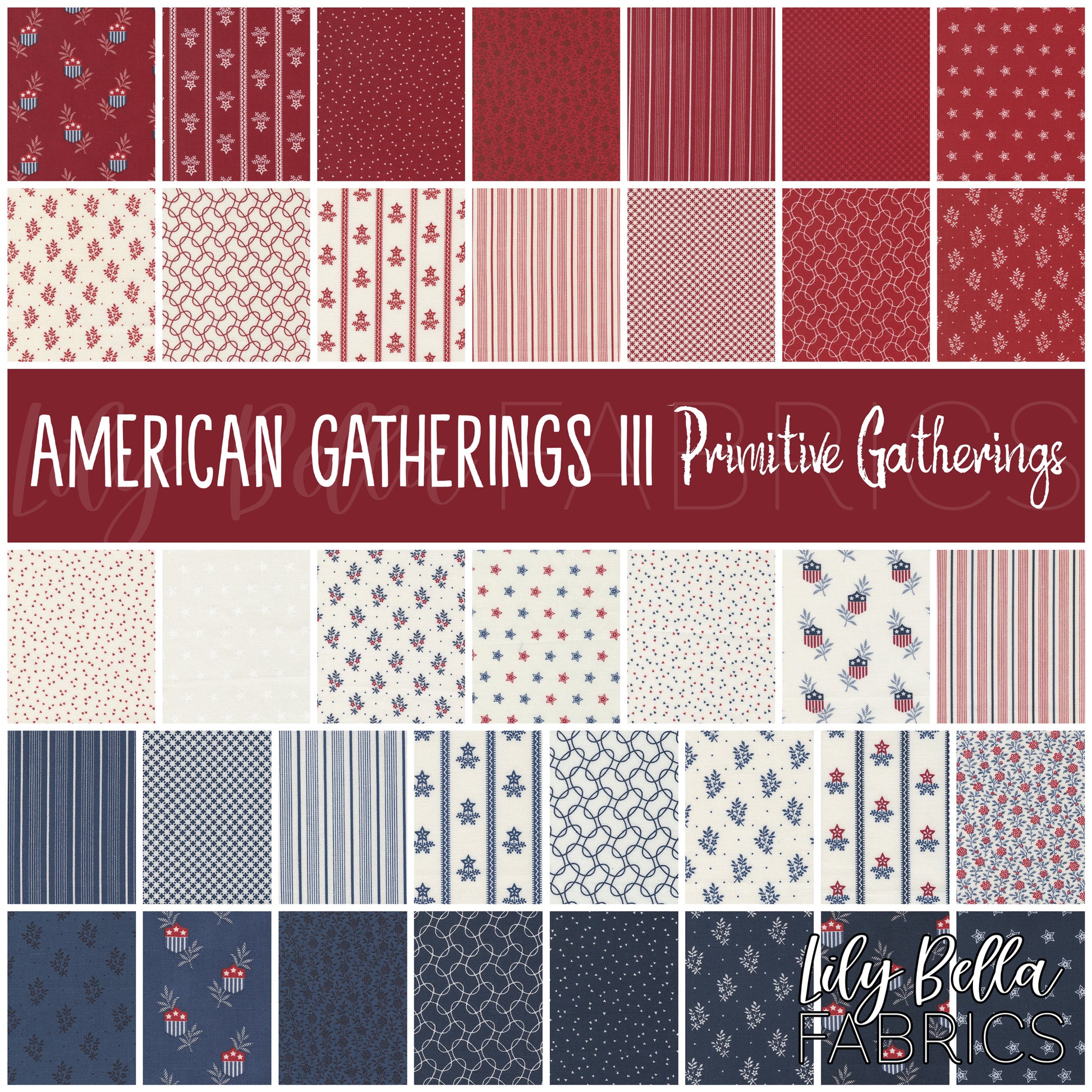 This 10 inch layer cake includes 42 pieces (38 prints) from the American Gatherings III collection by Primitive Gatherings for Moda.