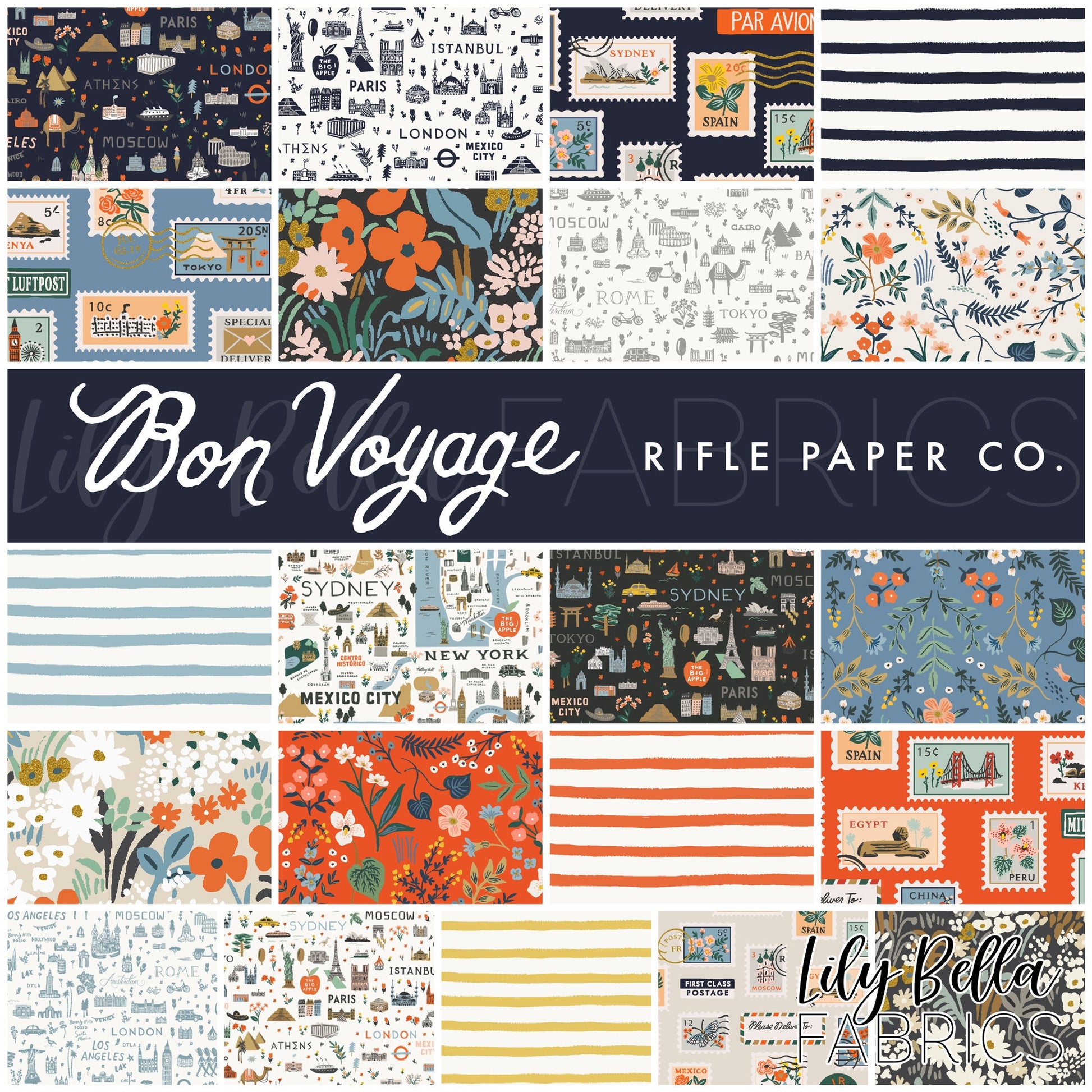 This fat quarter bundle includes 21 pieces from the Bon Voyage collection by Rifle Paper Co. for Cotton and Steel.