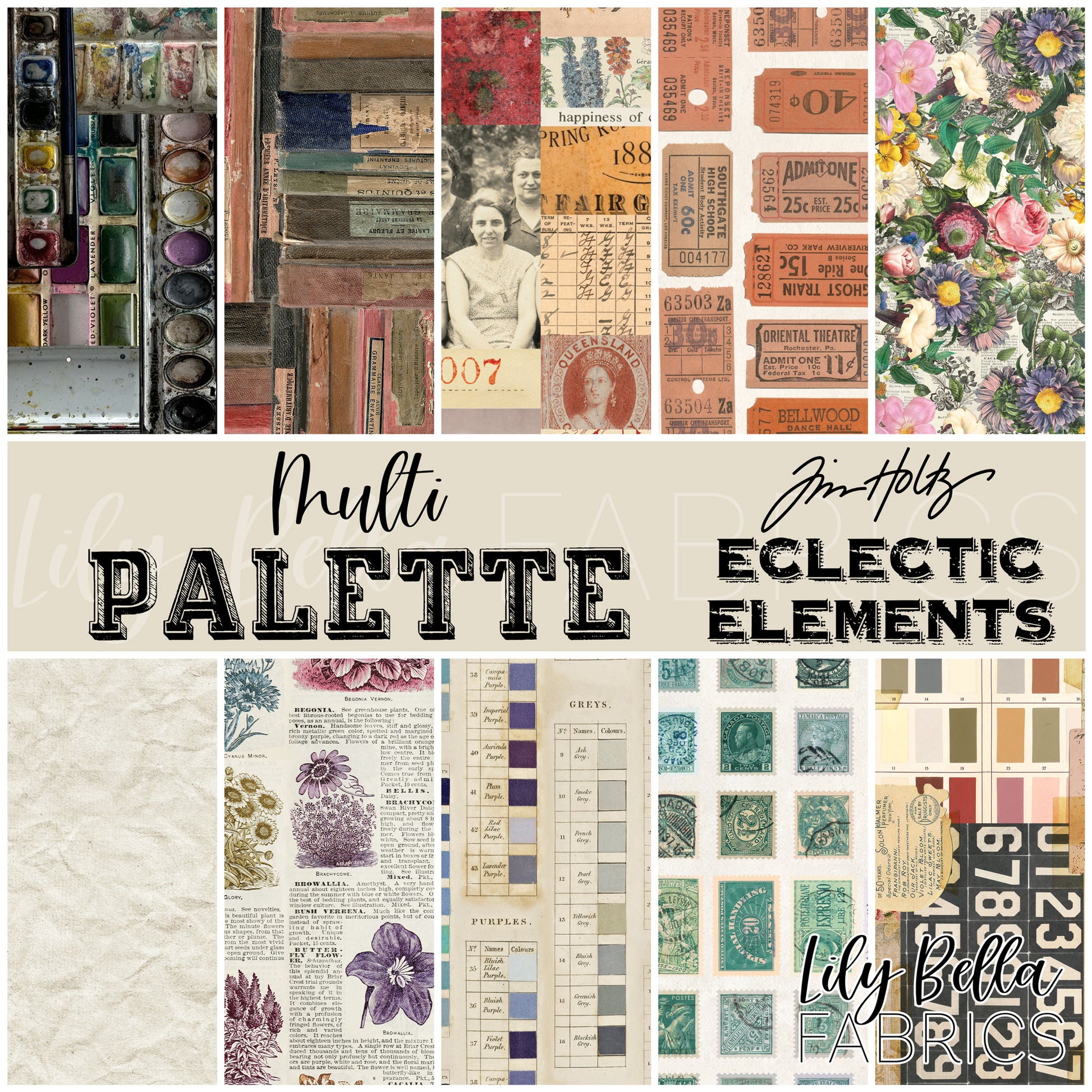 Eclectic Elements Palette: Multi Fat Eighth Bundle (10 pcs) by Tim Holtz for FreeSpirit