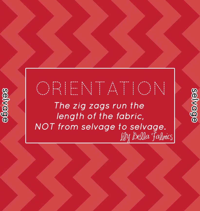 Orientation: The zig zags run the length of the fabric, NOT from selvage to selvage.