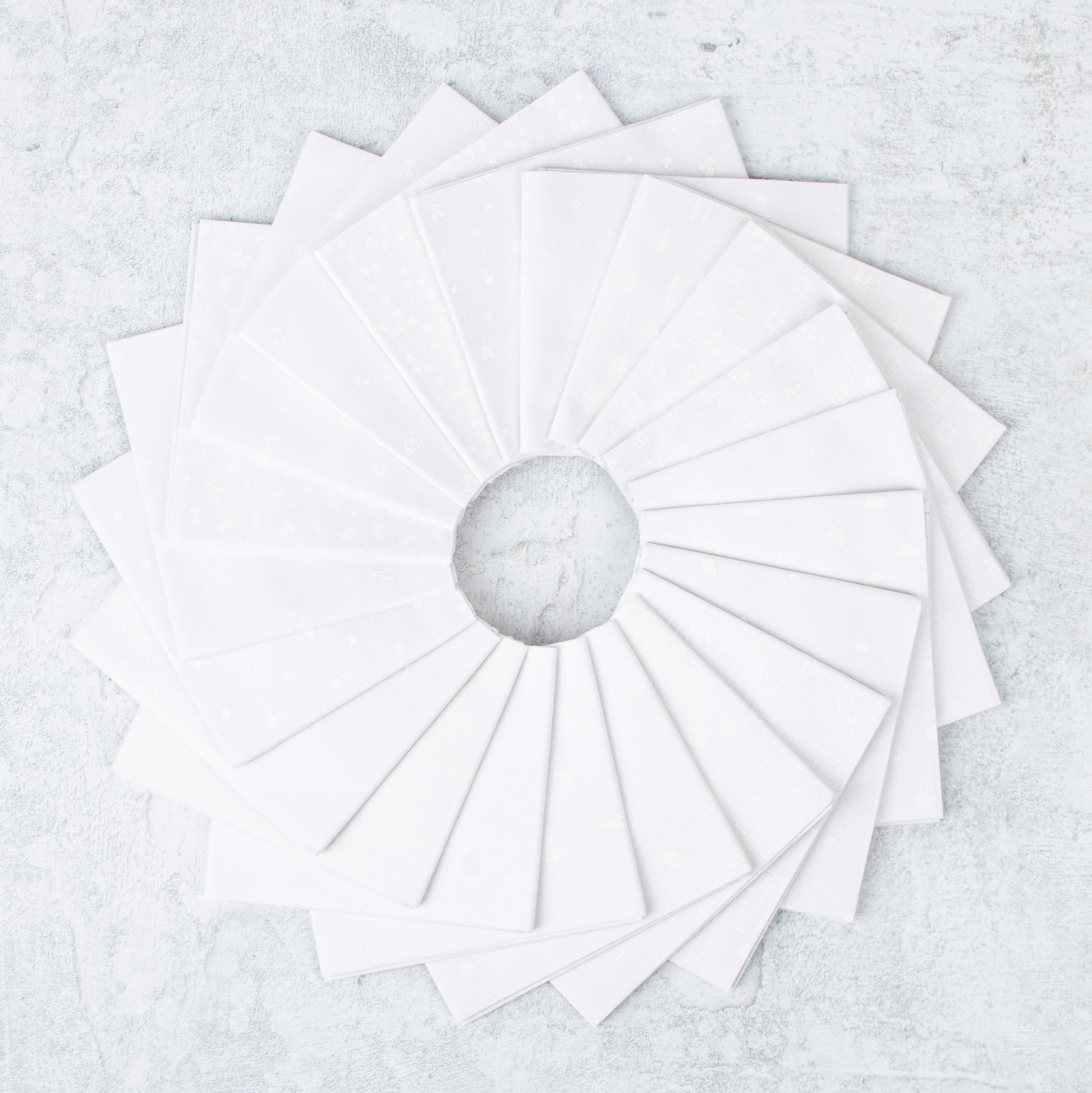PLEASE NOTE: This is a white-on-white collection. The gray designs shown in the collage are for illustration purposes only, to help you see the details of each print. All fabrics are printed in white ink on white fabric. Please refer to the item photos for the most accurate representation of the white-on-white color scheme.