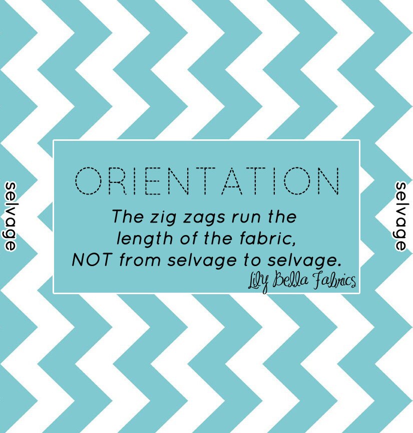 Orientation: The zig zags run the length of the fabric, NOT from selvage to selvage.