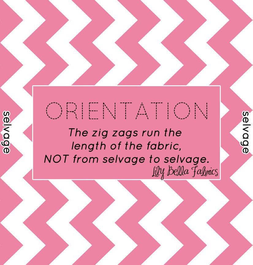 Orientation: The zig zags run the length of the fabric, NOT from selvage to selvage.