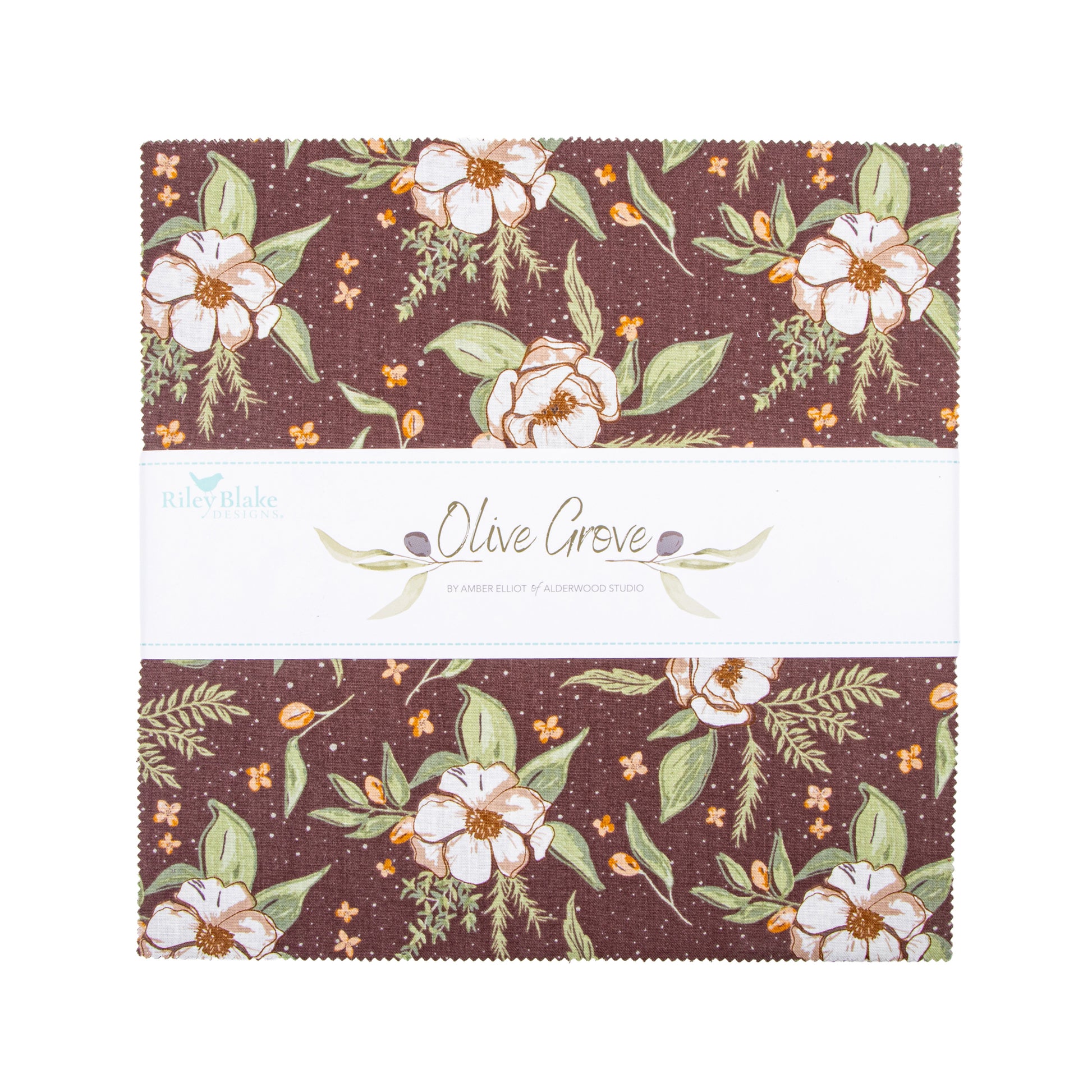 This 10 inch stacker (layer cake) includes 42 pieces (24 prints) from the Olive Grove collection by Amber Elliot for Riley Blake.