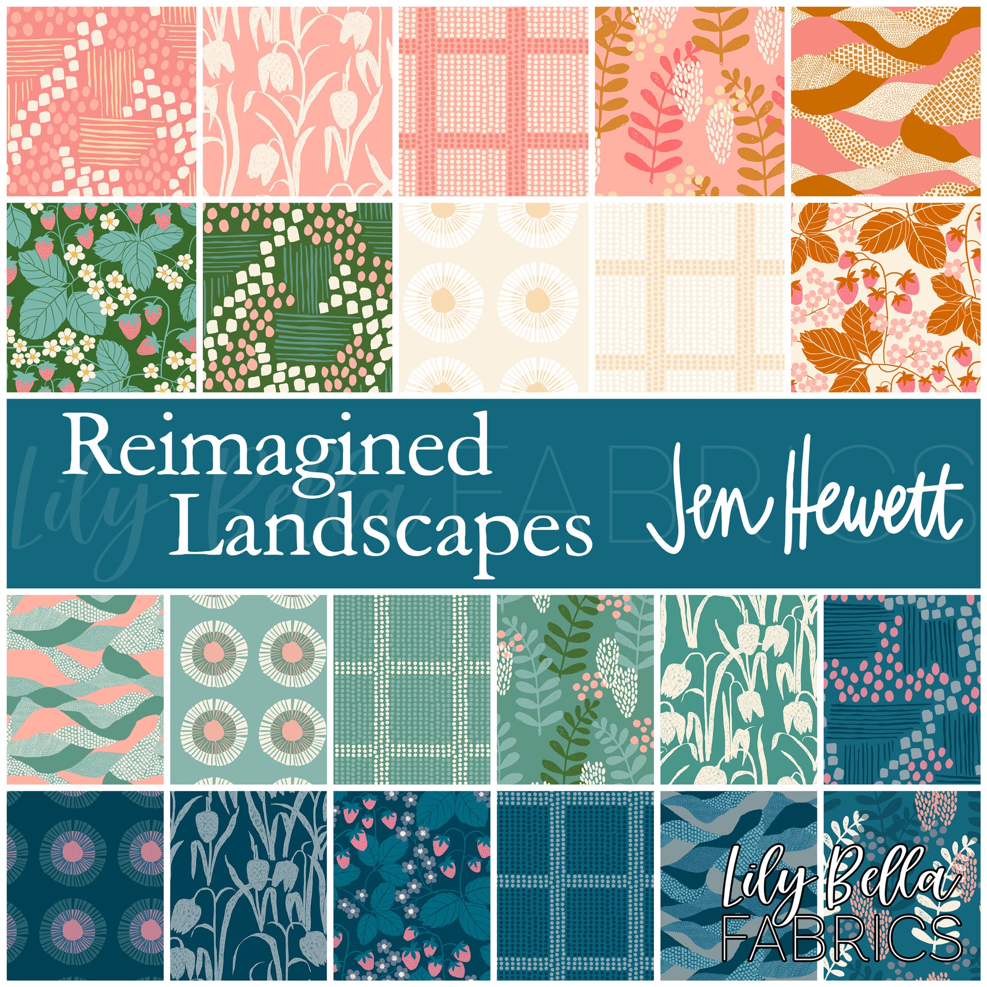 This 2.5 inch jelly roll includes 40 pieces (22 prints) from the Reimagined Landscapes collection by Jen Hewett for Ruby Star Society.